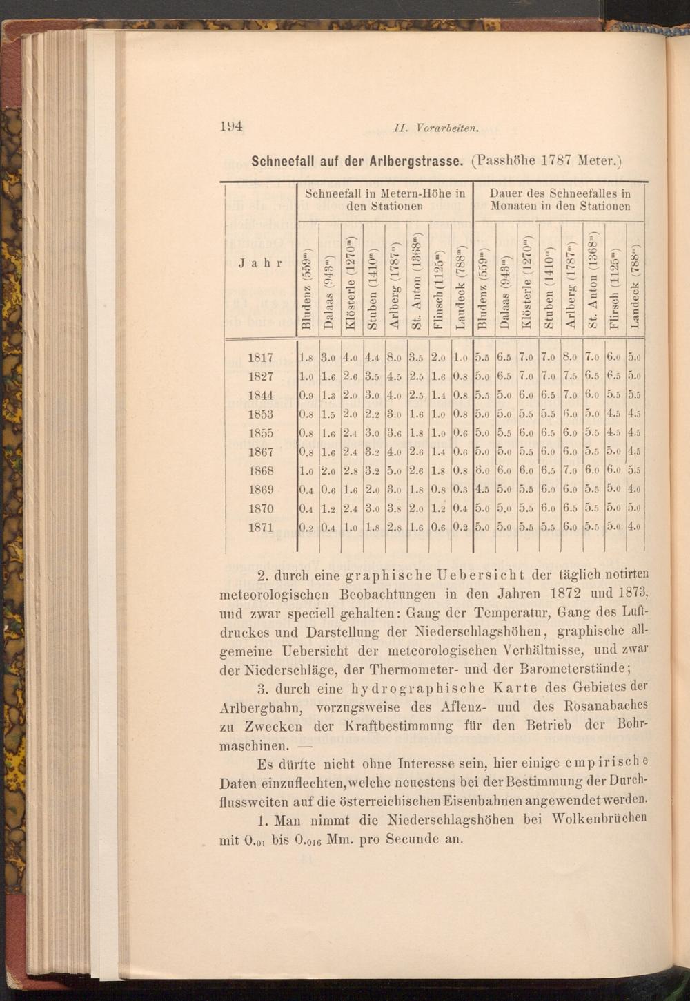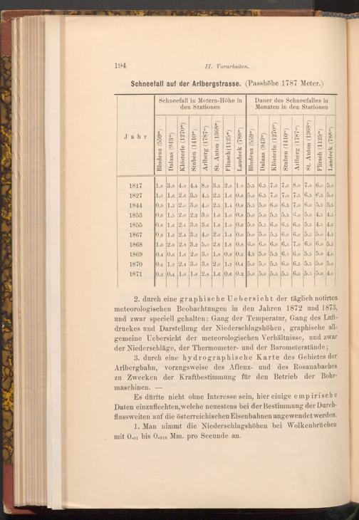 3. durch eine hydrographische Karte des Gebietes der Arlbergbahn, vorzugsweise des Aflenz- und des Rosanabaches zu Zwecken der Kraftbestimmung für den Betrieb der Bohrmaschinen.