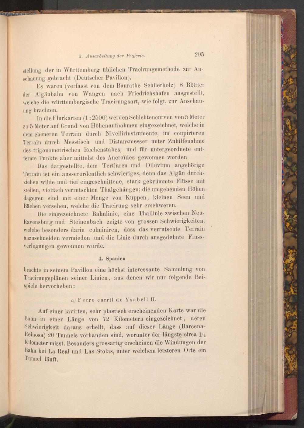 Es waren( verfasst von dem Baurathe Schlierholz) 8 Blätter der Algäubahn von Wangen nach Friedrichshafen ausgestellt, welche die württembergische Tracirungsart, wie folgt, zur Anschauung brachten.
