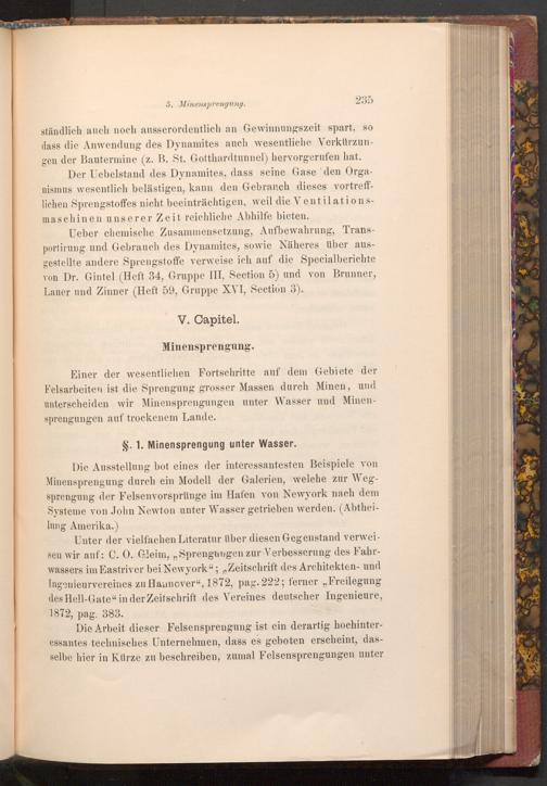 Unter der vielfachen Literatur über diesen Gegenstand verweisen wir auf: C. O. Gleim,„ Sprengungen zur Verbesserung des Fahrwassers im Eastriver bei Newyork";" Zeitschrift des Architekten- und Ingenieurvereines zu Hannover", 1872, pag. 222; ferner Freilegung des Hell- Gate" in der Zeitschrift des Vereines deutscher Ingenieure, 1872, pag. 383.