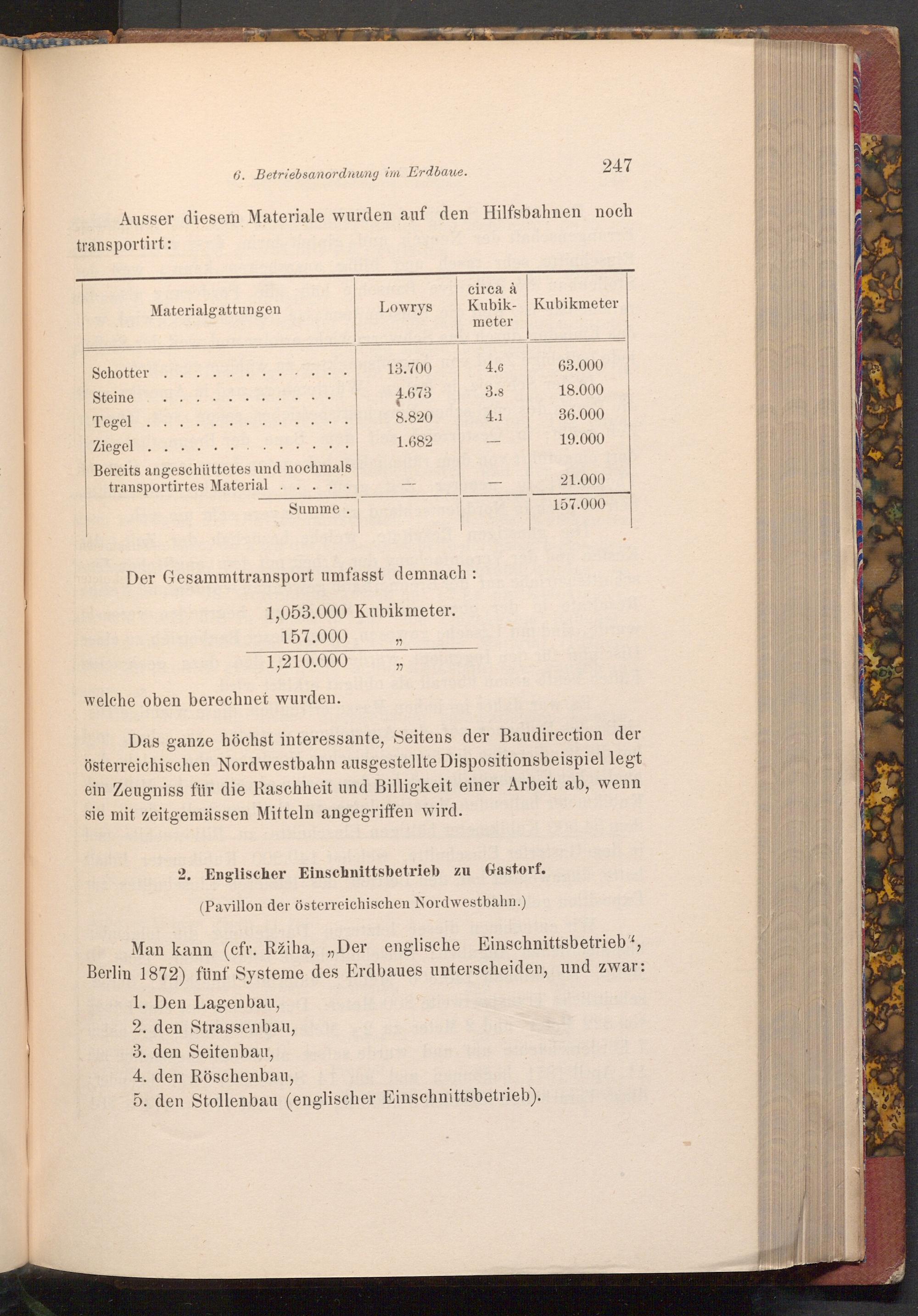 Man kann( cfr. Ržiha,„ Der englische Einschnittsbetrieb", Berlin 1872) fünf Systeme des Erdbaues unterscheiden, und zwar: