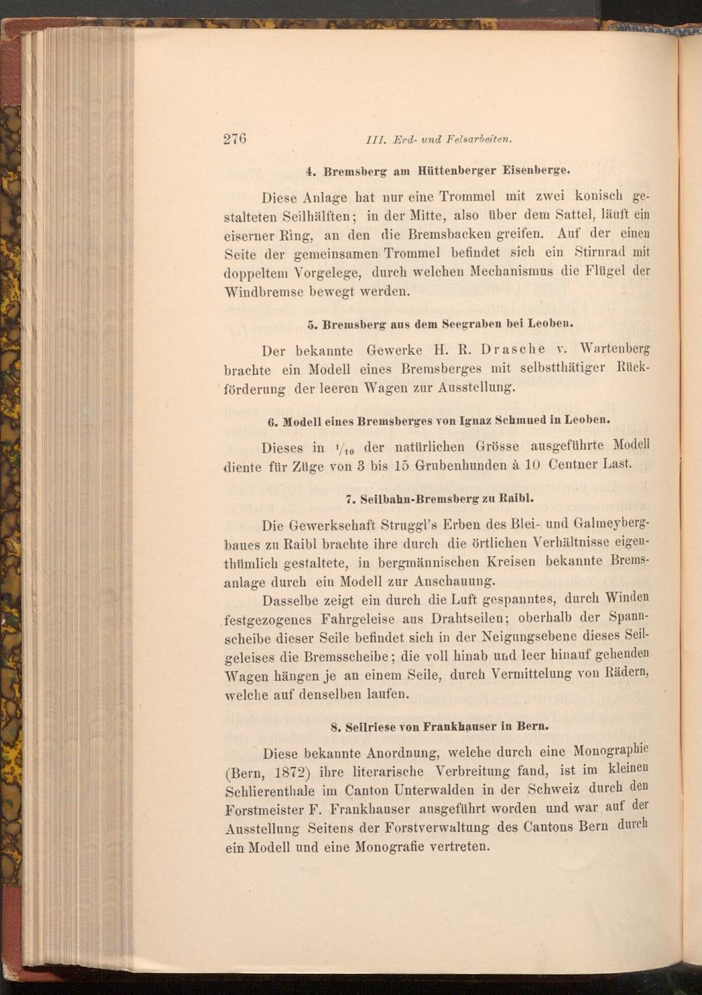 Diese bekannte Anordnung, welche durch eine Monographie ( Bern, 1872) ihre literarische Verbreitung fand, ist im kleinen Schlierenthale im Canton Unterwalden in der Schweiz durch den Forstmeister F. Frankhauser ausgeführt worden und war auf der Ausstellung Seitens der Forstverwaltung des Cantons Bern durch ein Modell und eine Monografie vertreten.