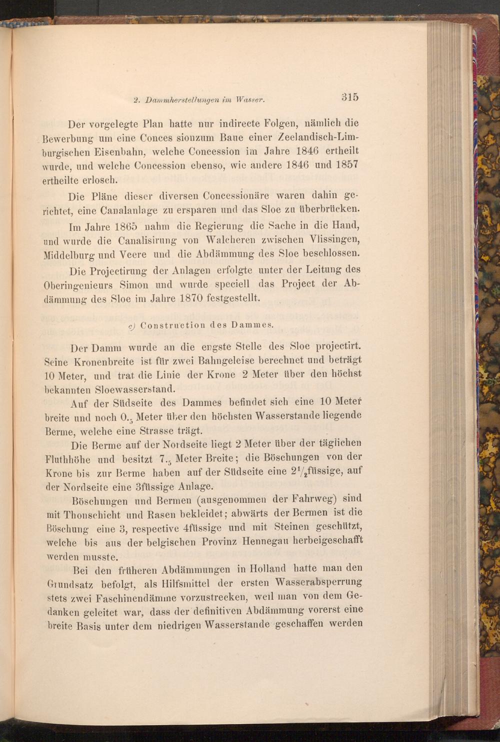 Die Projectirung der Anlagen erfolgte unter der Leitung des Oberingenieurs Simon und wurde speciell das Project der Abdämmung des Sloe im Jahre 1870 festgestellt.