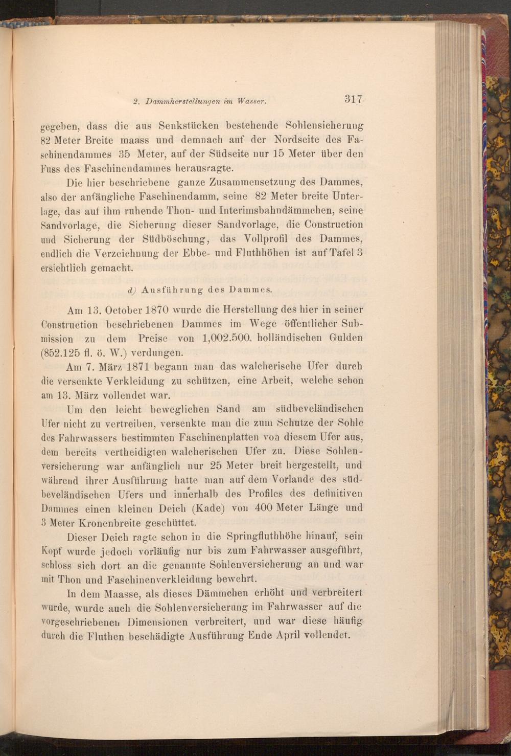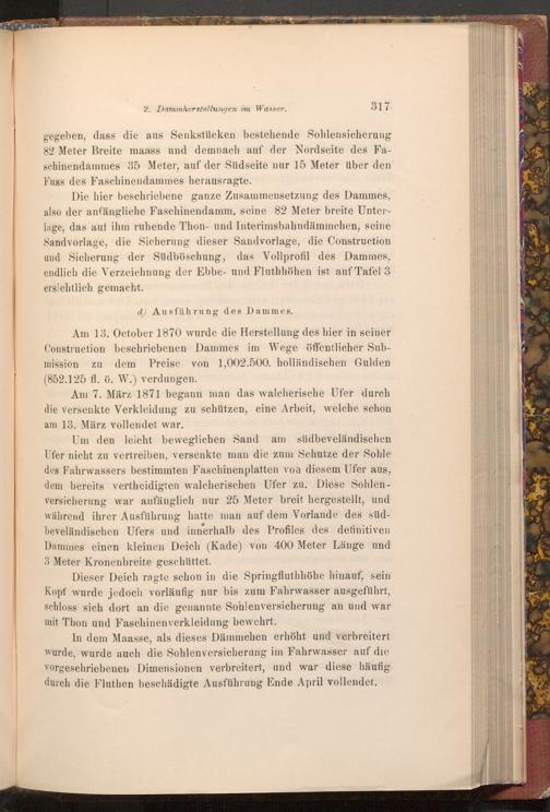 Am 13. October 1870 wurde die Herstellung des hier in seiner Construction beschriebenen Dammes im Wege öffentlicher Submission zu dem Preise von 1,002.500. holländischen Gulden ( 852.125 fl. ö. W.) verdungen.