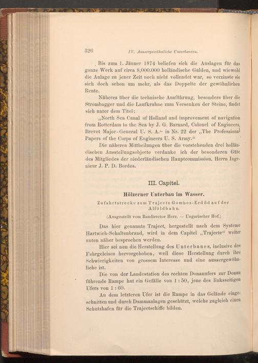 Bis zum 1. Jänner 1874 beliefen sich die Auslagen für das ganze Werk auf circa 8,000.000 holländische Gulden, und wiewohl die Anlage zu jener Zeit noch nicht vollendet war, so verzinste sie sich doch schon um mehr, als das Doppelte der gewöhnlichen