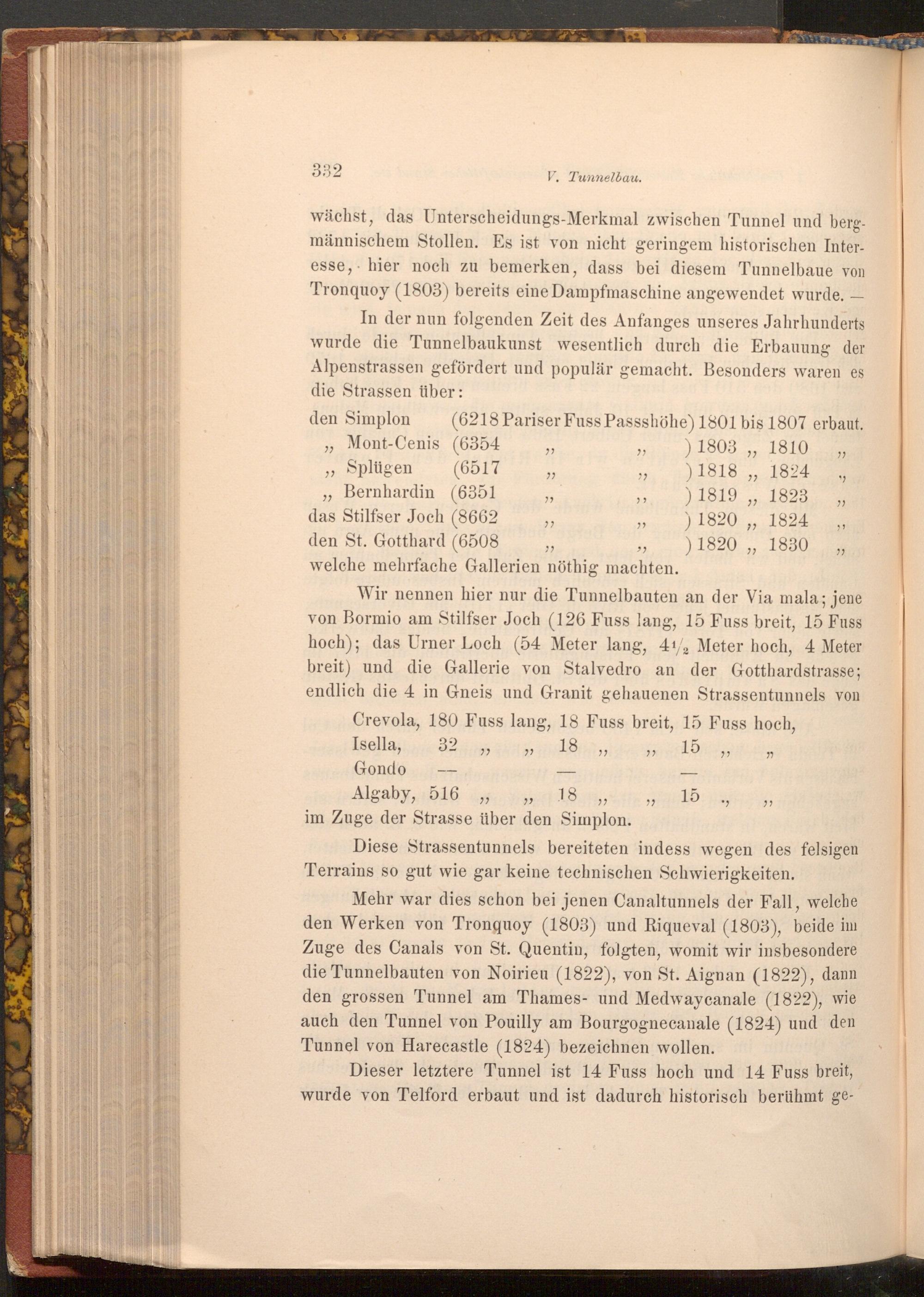 wächst, das Unterscheidungs- Merkmal zwischen Tunnel und bergmännischem Stollen. Es ist von nicht geringem historischen Interesse, hier noch zu bemerken, dass bei diesem Tunnelbaue von Tronquoy( 1803) bereits eine Dampfmaschine angewendet wurde.
