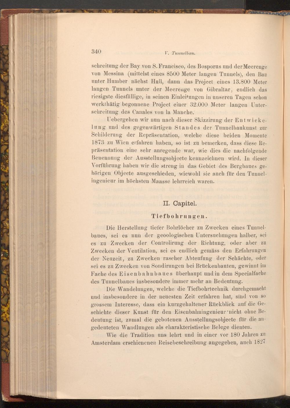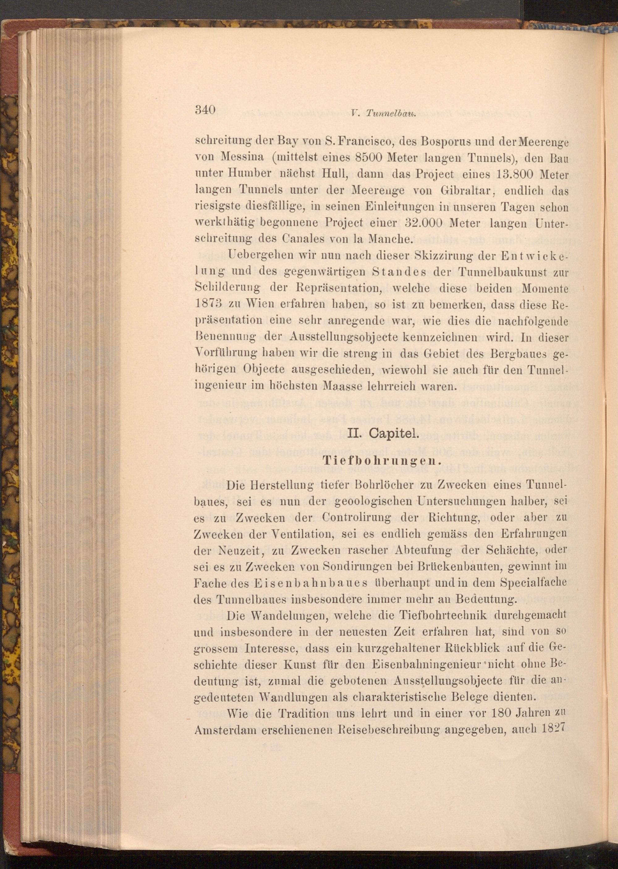 Uebergehen wir nun nach dieser Skizzirung der Entwickelung und des gegenwärtigen Standes der Tunnelbaukunst zur Schilderung der Repräsentation, welche diese beiden Momente 1873 zu Wien erfahren haben, so ist zu bemerken, dass diese Repräsentation eine sehr anregende war, wie dies die nachfolgende Benennung der Ausstellungsobjecte kennzeichnen wird. In dieser Vorführung haben wir die streng in das Gebiet des Bergbaues gehörigen Objecte ausgeschieden, wiewohl sie auch für den Tunnelingenieur im höchsten Maasse lehrreich waren.