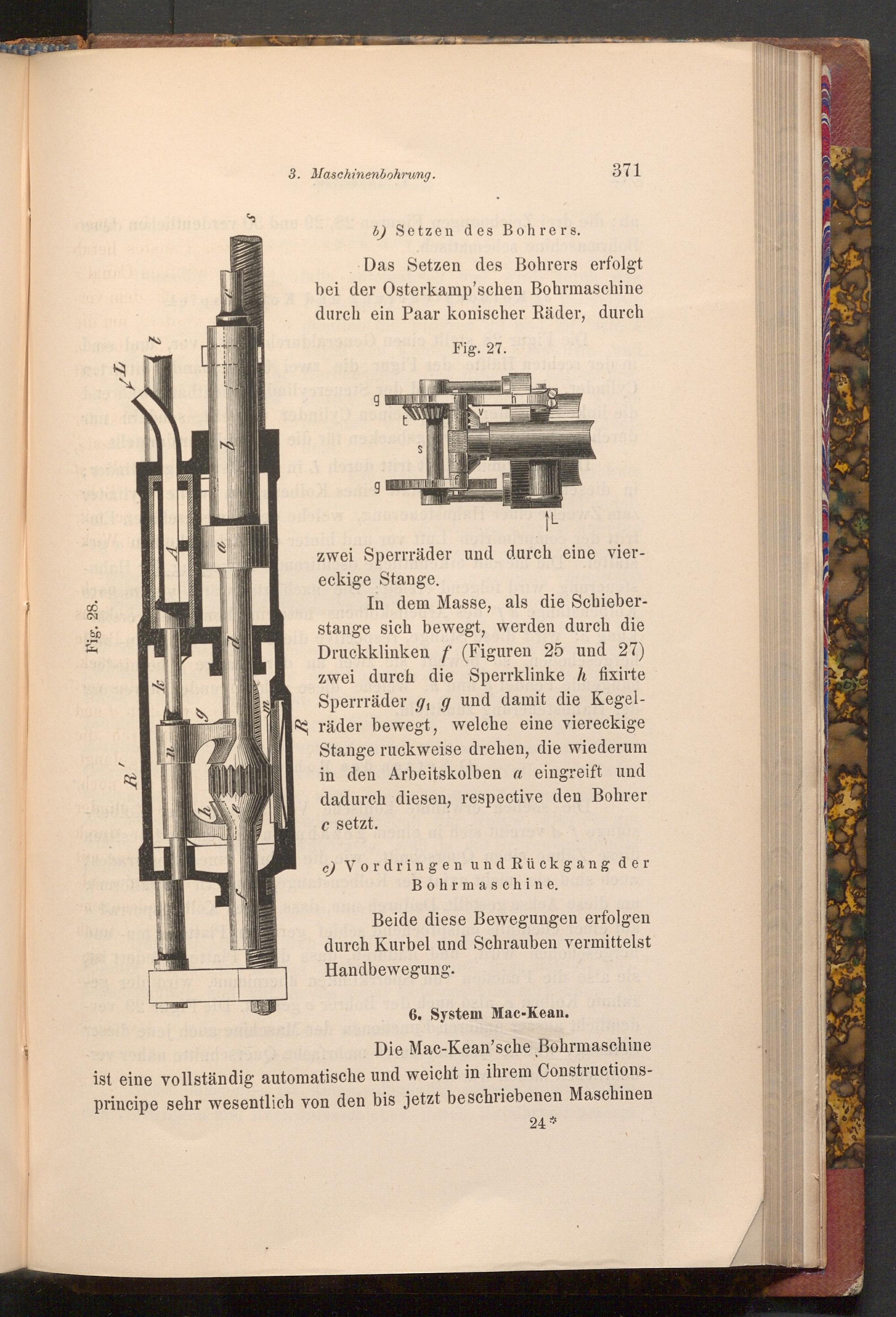 Das Setzen des Bohrers erfolgt bei der Osterkamp'schen Bohrmaschine durch ein Paar konischer Räder, durch