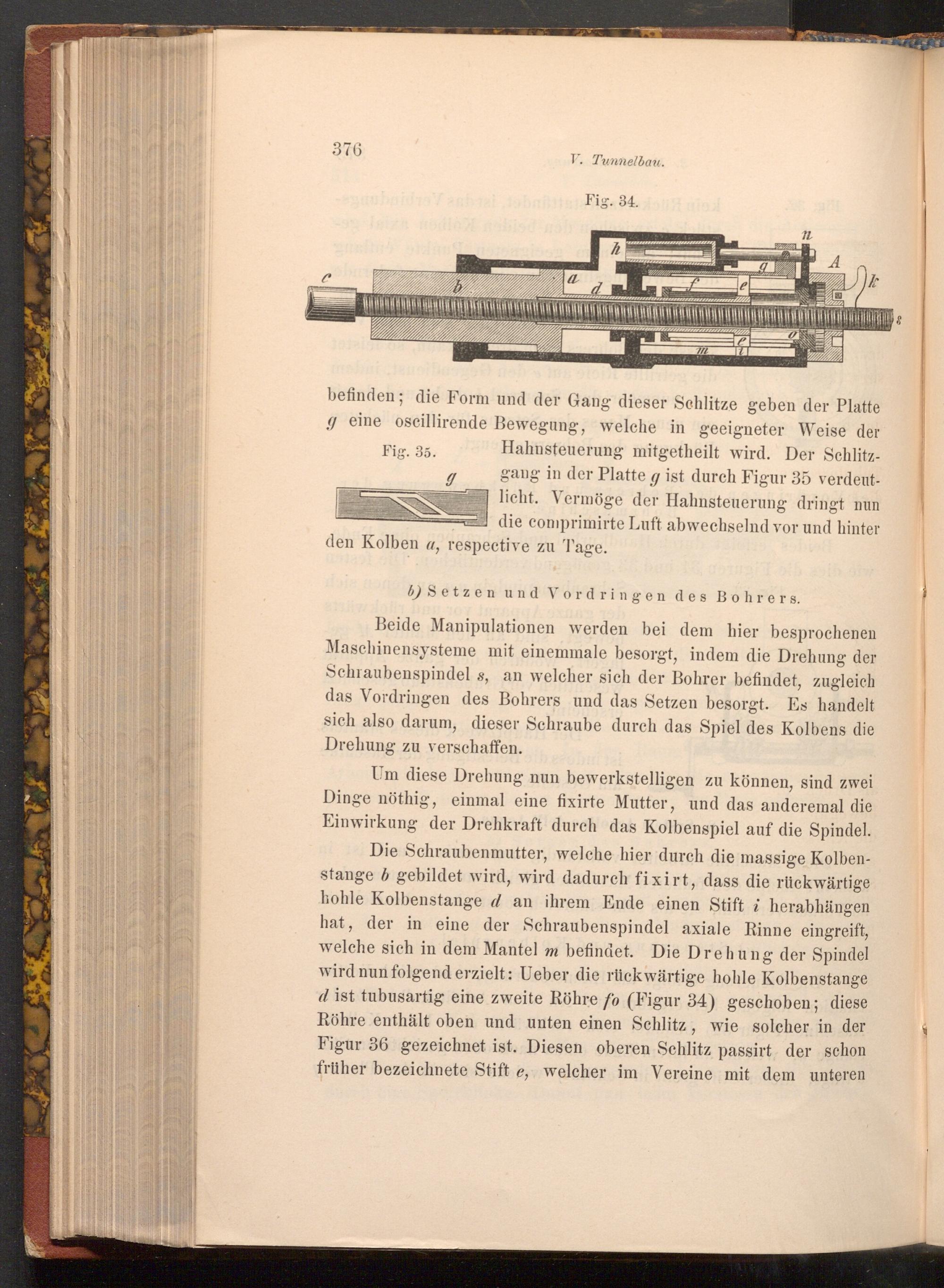 gang in der Platte g ist durch Figur 35 verdeutlicht. Vermöge der Hahnsteuerung dringt nun die comprimirte Luft abwechselnd vor und hinter