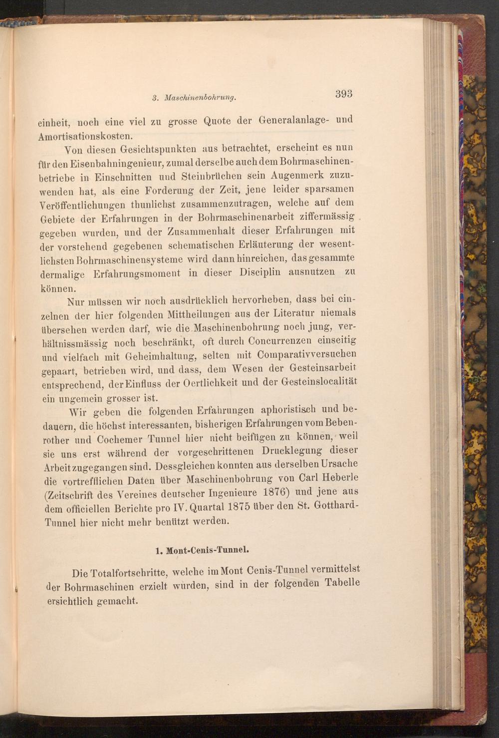 Wir geben die folgenden Erfahrungen aphoristisch und bedauern, die höchst interessanten, bisherigen Erfahrungen vom Bebenrother und Cochemer Tunnel hier nicht beifügen zu können, weil sie uns erst während der vorgeschrittenen Drucklegung dieser Arbeit zugegangen sind. Dessgleichen konnten aus derselben Ursache die vortrefflichen Daten über Maschinenbohrung von Carl Heberle ( Zeitschrift des Vereines deutscher Ingenieure 1876) und jene aus dem officiellen Berichte pro IV. Quartal 1875 über den St. GotthardTunnel hier nicht mehr benützt werden.