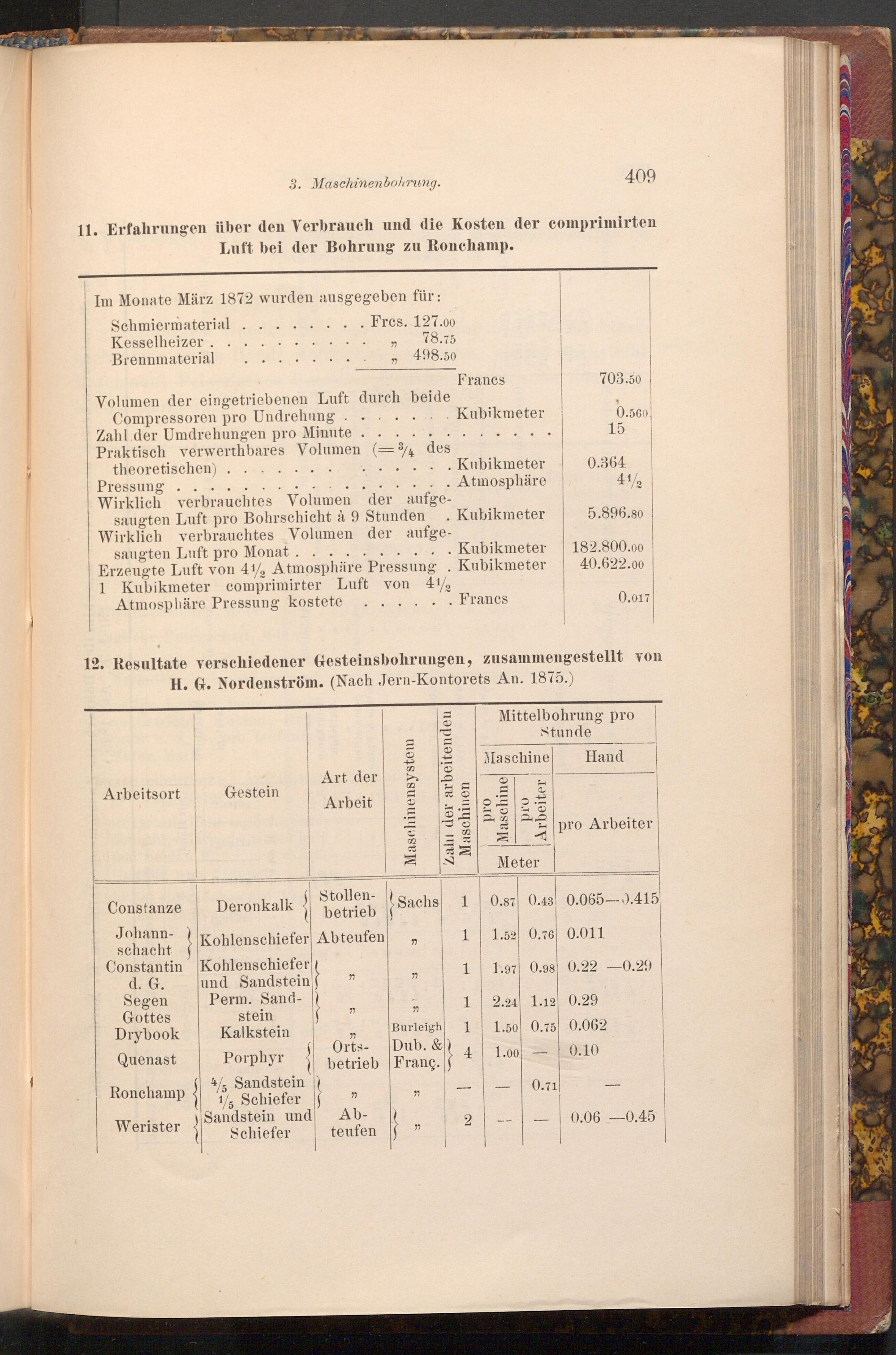 11. Erfahrungen über den Verbrauch und die Kosten der comprimirten Luft bei der Bohrung zu Ronchamp.