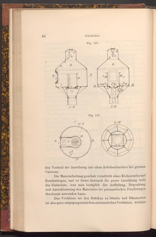 den Vortheil der Anordnung nur eines Arbeitsschachtes bei grossen Caissons.