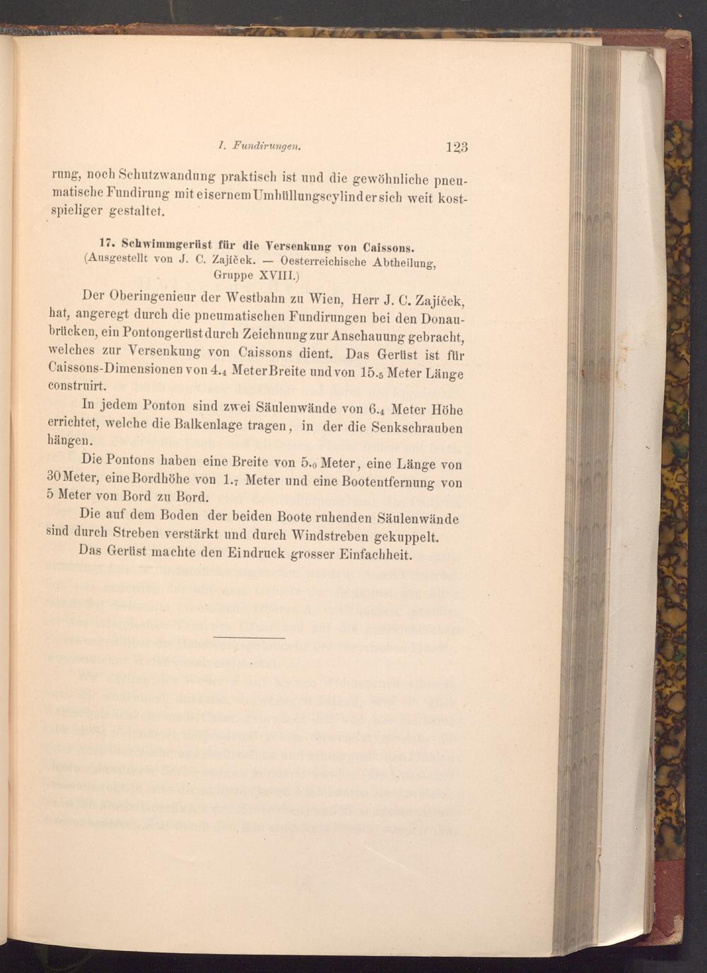 17. Schwimmgerüst für die Versenkung von Caissons. ( Ausgestellt von J. C. Zajíček. Oesterreichische Abtheilung, Gruppe XVIII.)