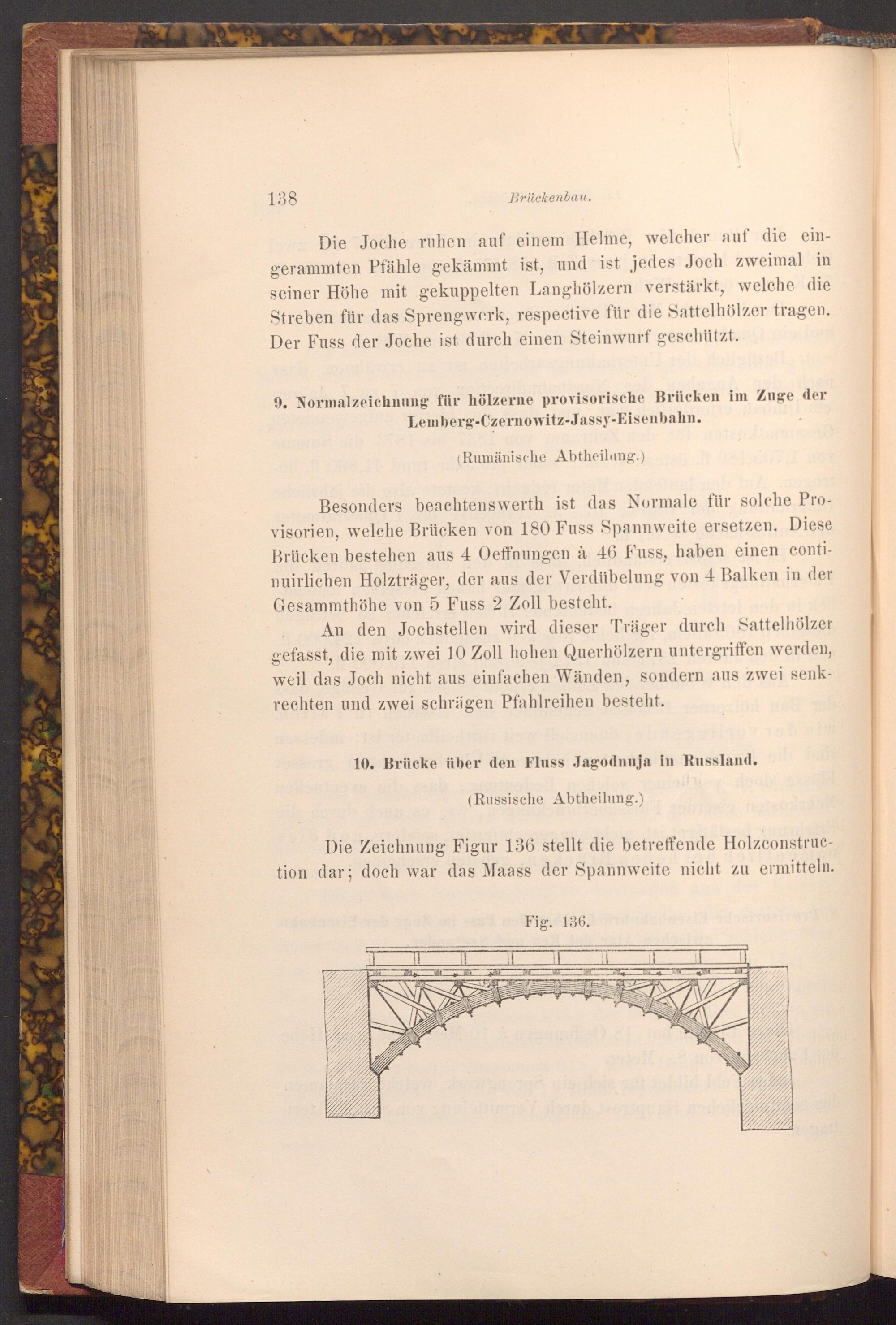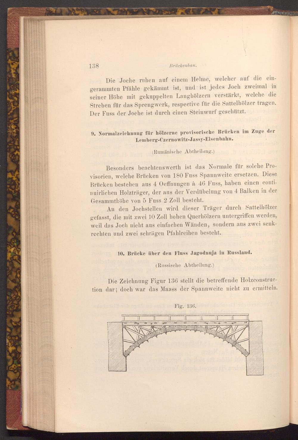 Die Zeichnung Figur 136 stellt die betreffende Holzconstruction dar; doch war das Maass der Spannweite nicht zu ermitteln.