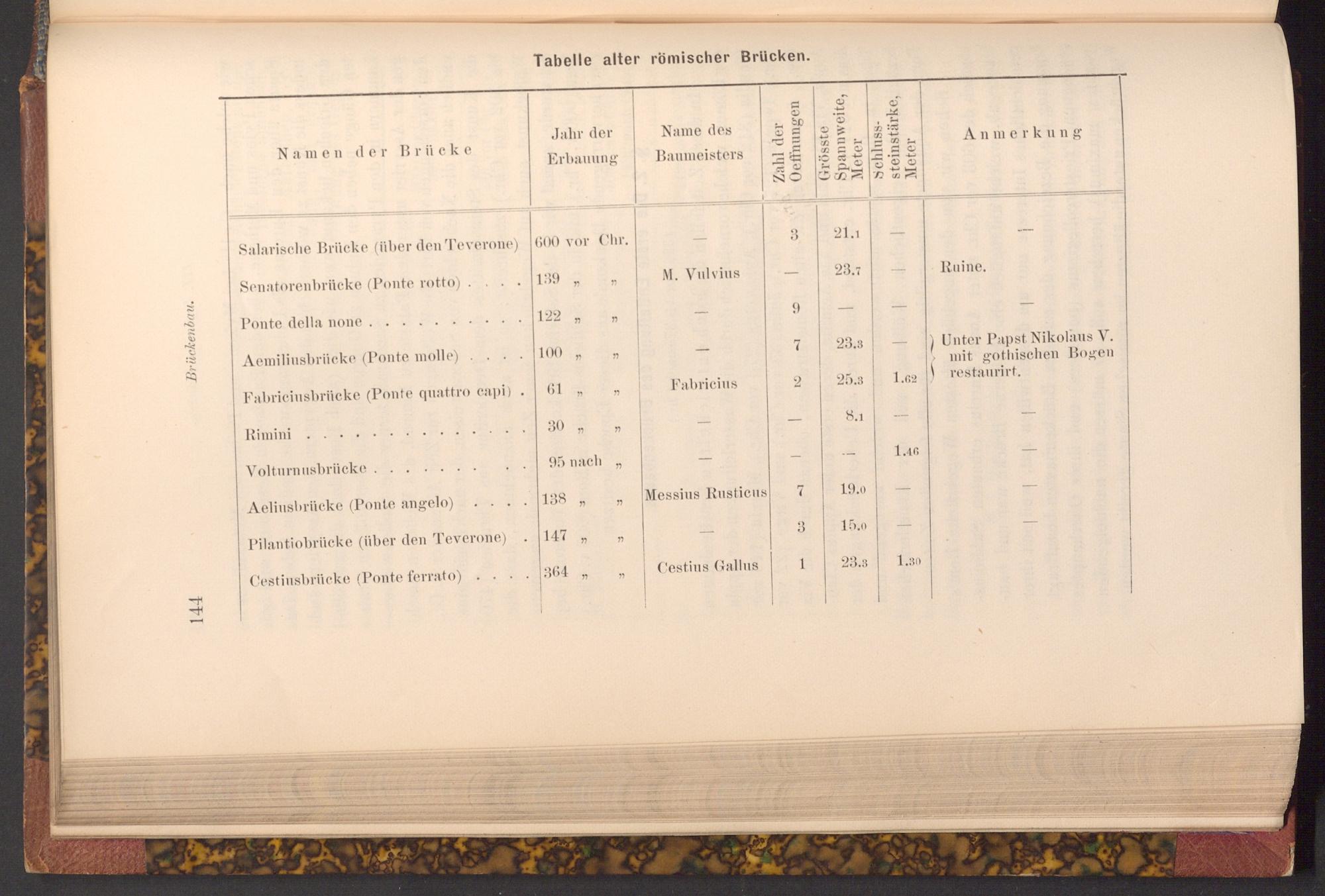 Tabelle alter römischer Brücken.