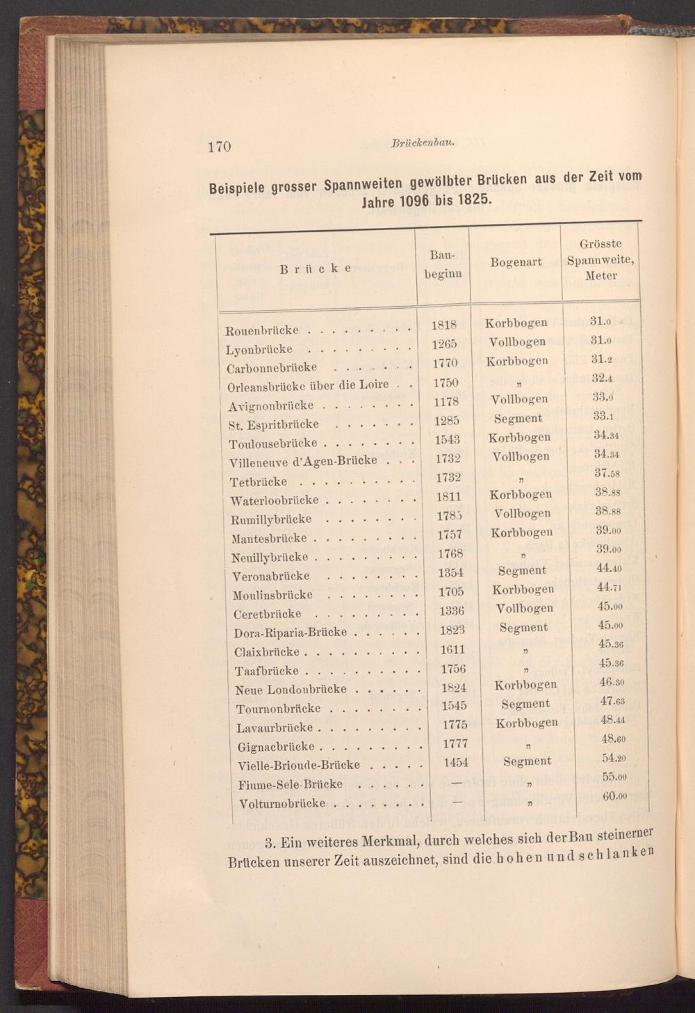 Beispiele grosser Spannweiten gewölbter Brücken aus der Zeit vom Jahre 1096 bis 1825.