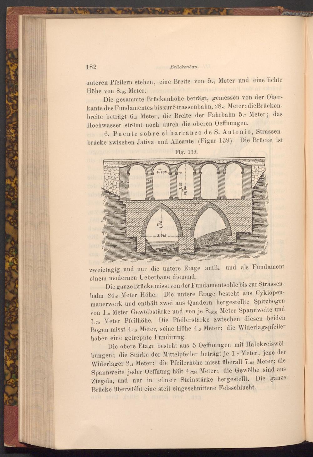 6. Puente sobre el barranco de S. Antonio, Strassenbrücke zwischen Jativa und Alicante( Figur 139). Die Brücke ist Fig. 139.