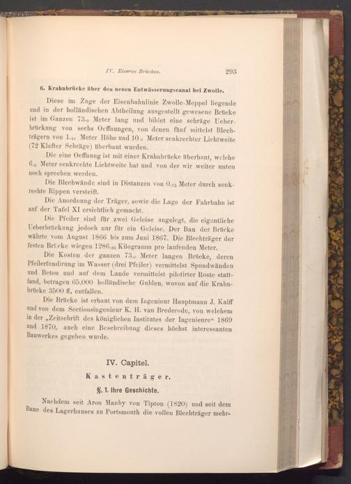 Die Brücke ist erbaut von dem Ingenieur Hauptmann J. Kalff und von dem Sectionsingenieur K. H. van Brederode, von welchem in der„ Zeitschrift des königlichen Institutes der Ingenieure" 1869 und 1870, auch eine Beschreibung dieses höchst interessanten Bauwerkes gegeben wurde.