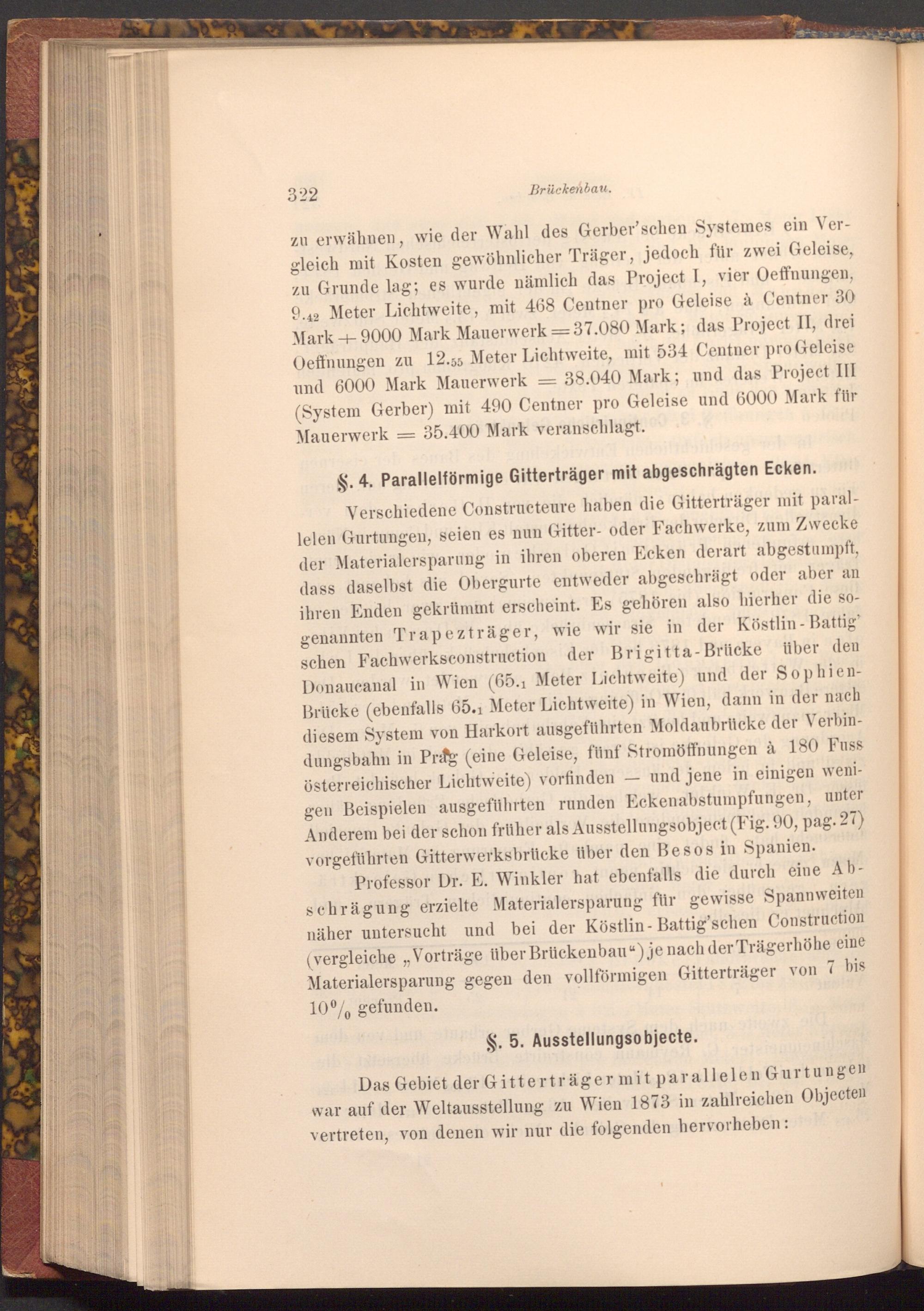 Das Gebiet der Gitterträger mit parallelen Gurtungen war auf der Weltausstellung zu Wien 1873 in zahlreichen Objecten vertreten, von denen wir nur die folgenden hervorheben:
