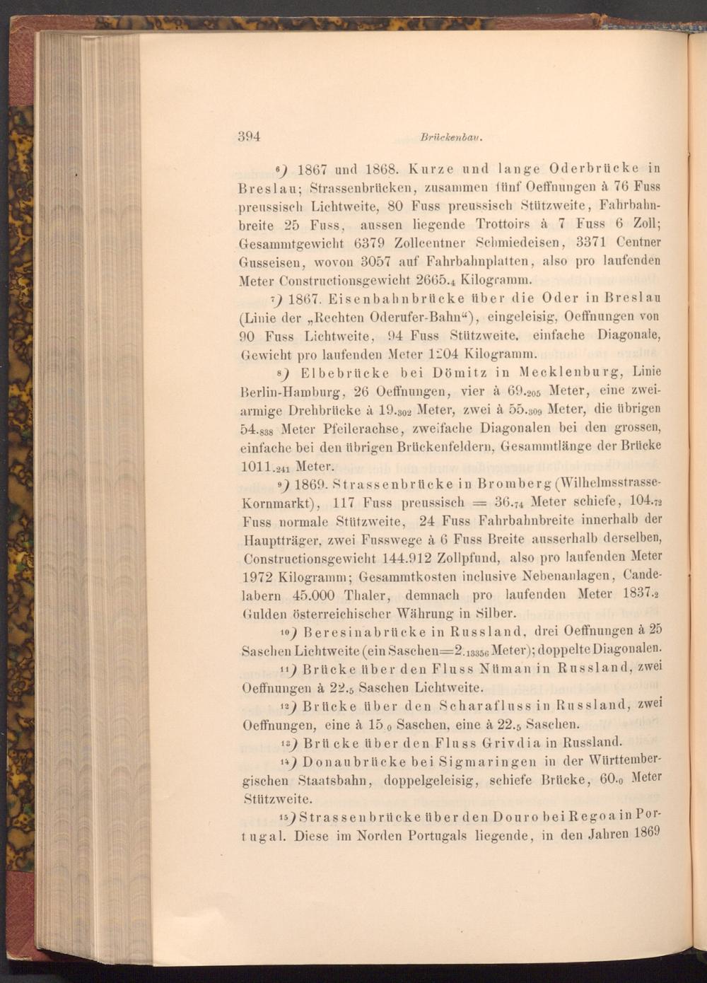10) Beresinabrücke in Russland, drei Oeffnungen à 25 Saschen Lichtweite( ein Saschen= 2.13356 Meter); doppelte Diagonalen. 11) Brücke über den Fluss Nüman in Russland, zwei Oeffnungen à 22.5 Saschen Lichtweite.