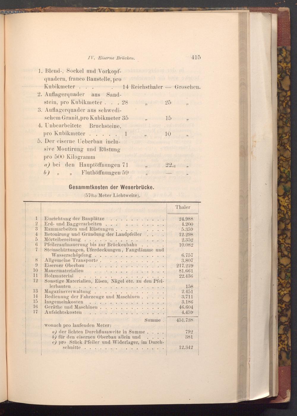 2. Auflagerquader aus Sandstein, pro Kubikmeter. 28 3. Auflagerquader aus schwedischem Granit, pro Kubikmeter 35 4. Unbearbeitete Bruchsteine, pro Kubikmeter.