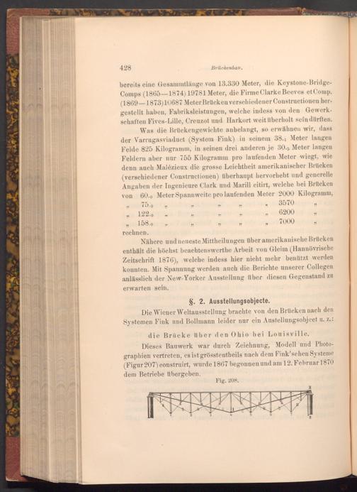 Die Wiener Weltausstellung brachte von den Brücken nach den Systemen Fink und Bollmann leider nur ein Austellungsobject u. z.: die Brücke über den Ohio bei Louisville.