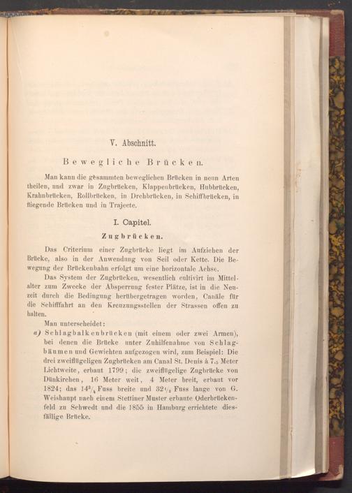 Das System der Zugbrücken, wesentlich cultivirt im Mittelalter zum Zwecke der Absperrung fester Plätze, ist in die Neuzeit durch die Bedingung herübergetragen worden, Canäle für die Schifffahrt an den Kreuzungsstellen der Strassen offen zu halten.