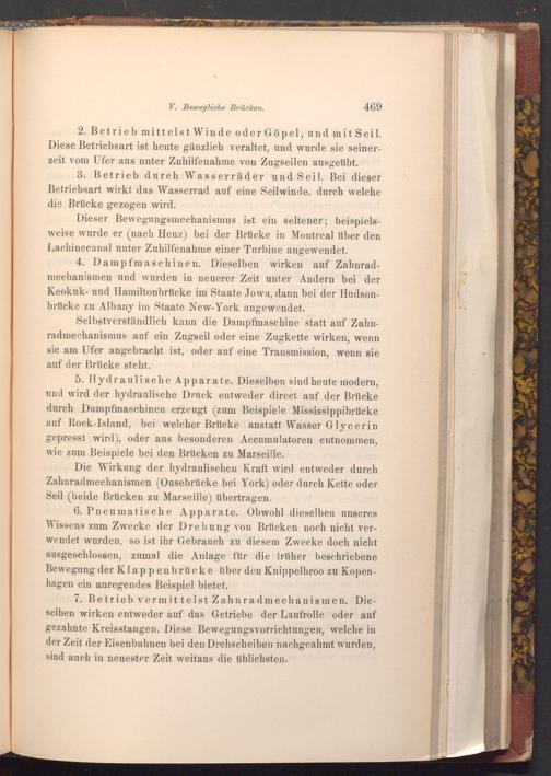 4. Dampfmaschinen. Dieselben wirken auf Zahnradmechanismen und wurden in neuerer Zeit unter Andern bei der Keokuk- und Hamiltonbrücke im Staate Jowa, dann bei der Hudsonbrücke zu Albany im Staate New- York angewendet.