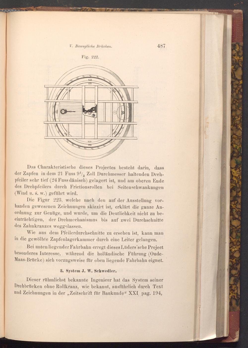 Dieser rühmlichst bekannte Ingenieur hat das System seiner Drehbrücken ohne Rollkranz, wie bekannt, ausführlich durch Text und Zeichnungen in der Zeitschrift für Baukunde" XXI, pag. 194,