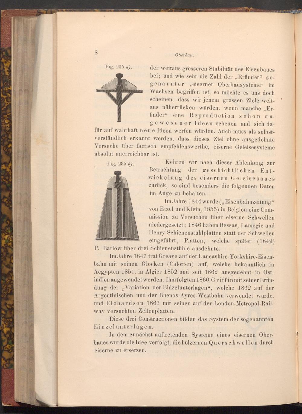 In dem zunächst auftretenden Systeme eines eisernen Oberbaues wurde die Idee verfolgt, die hölzernen Querschwellen durch eiserne zu ersetzen.