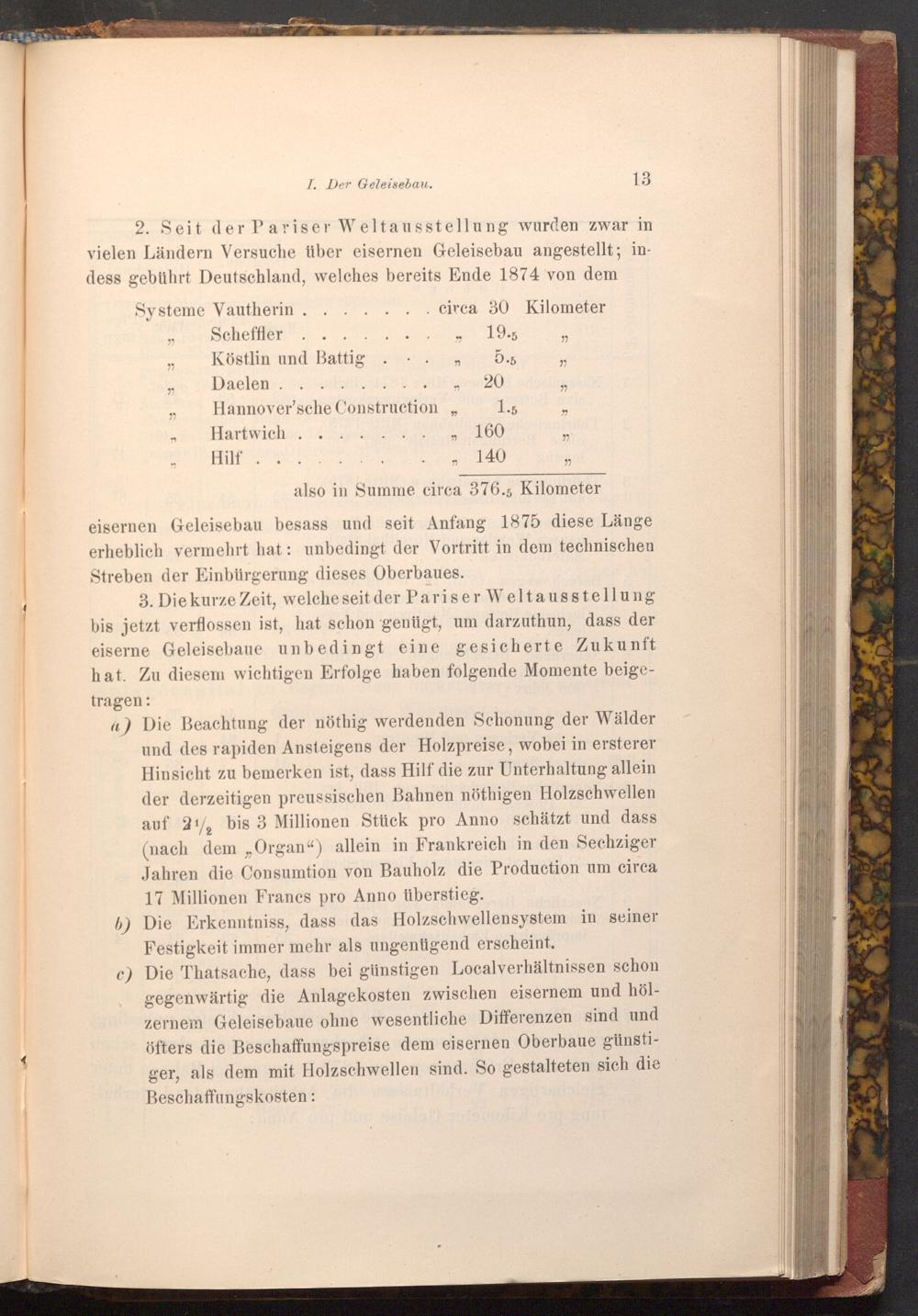 2. Seit der Pariser Weltausstellung wurden zwar in vielen Ländern Versuche über eisernen Geleisebau angestellt; indess gebührt Deutschland, welches bereits Ende 1874 von dem