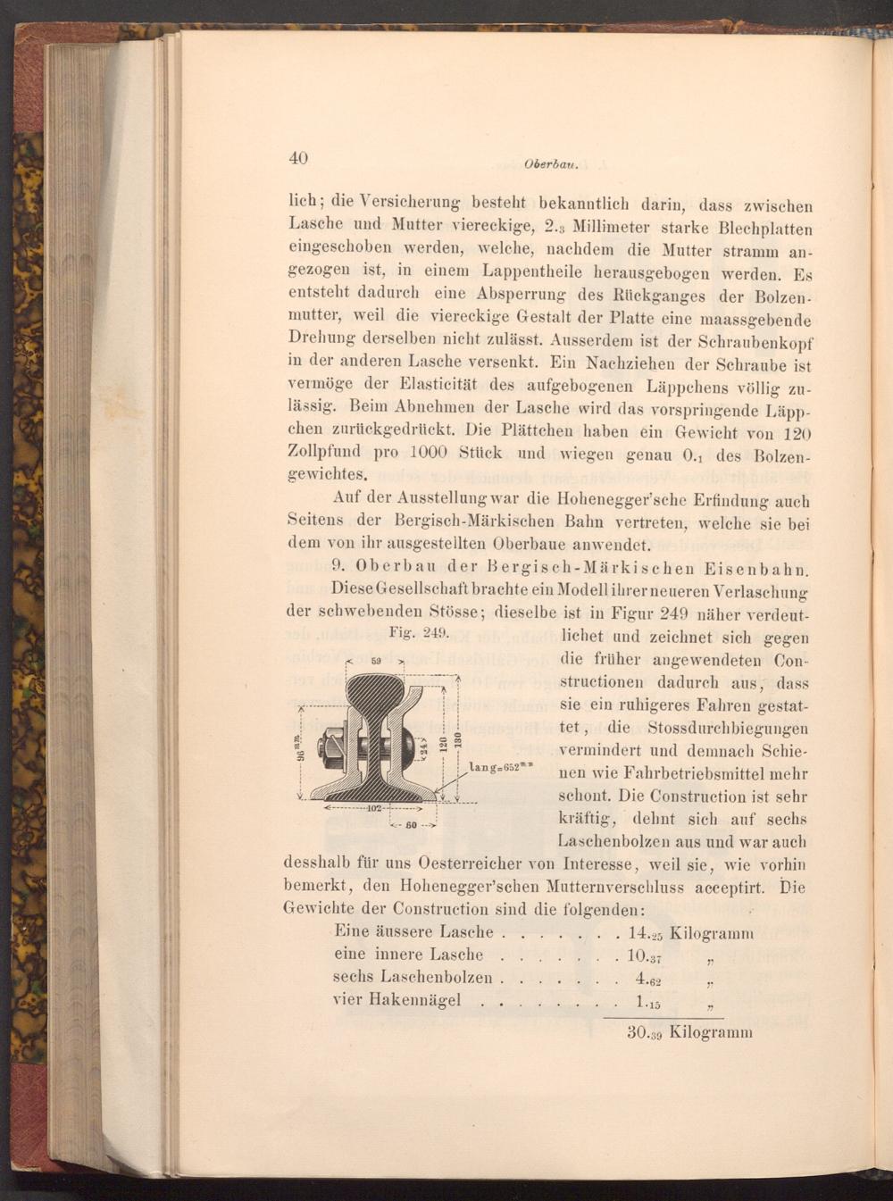 Auf der Ausstellung war die Hohenegger'sche Erfindung auch Seitens der Bergisch- Märkischen Bahn vertreten, welche sie bei dem von ihr ausgestellten Oberbaue anwendet.