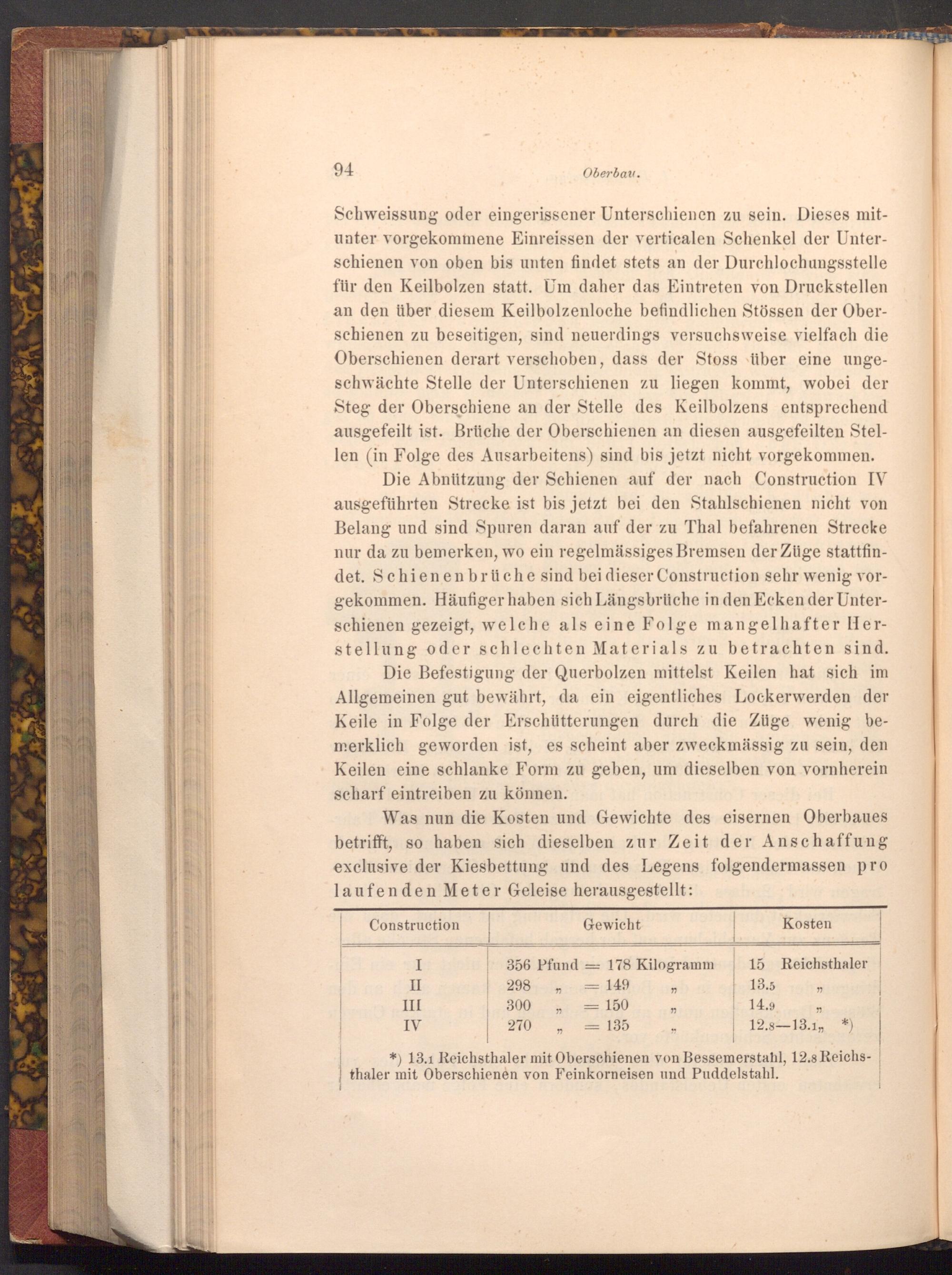 *) 13.1 Reichsthaler mit Oberschienen von Bessemerstahl, 12.8 Reichs