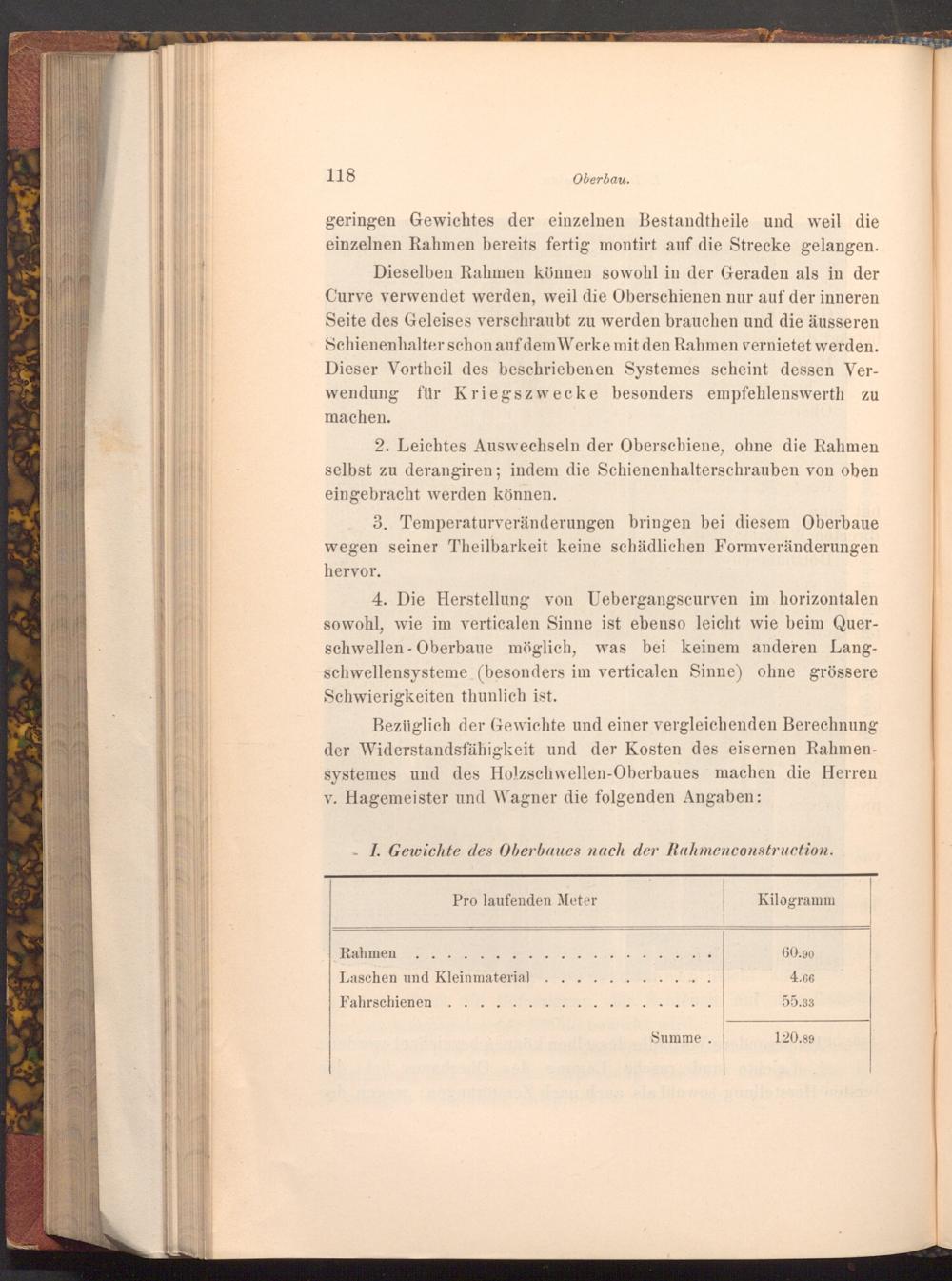 I. Gewichte des Oberbaues nach der Rahmen construction.