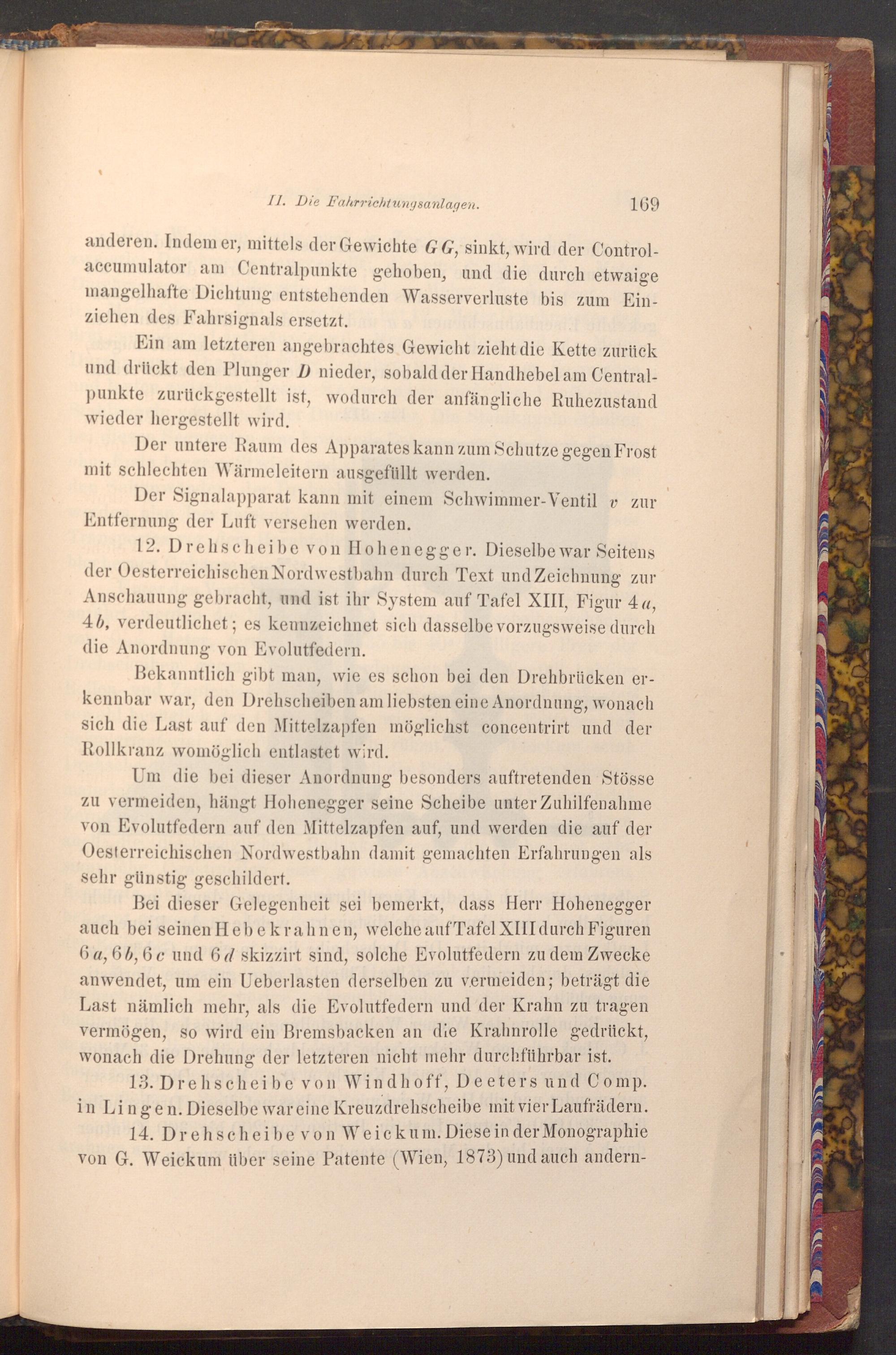 13. Drehscheibe von Windhoff, Deeters und Comp. in Lingen. Dieselbe war eine Kreuzdrehscheibe mit vier Laufrädern. 14. Drehscheibe von Weickum. Diese in der Monographie von G. Weickum über seine Patente( Wien, 1873) und auch andern