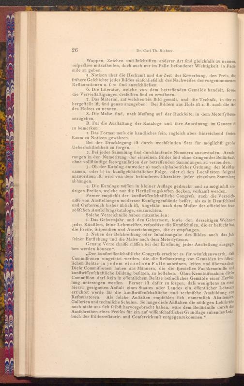 5. Notizen über die Herkunft und die Zeit der Erwerbung, den Preis, die frühere Gefchichte jedes Bildes einfchliefslich des Nachweifes der vorgenommenen Reftaurationen u. f. w. find anzufchliefsen.