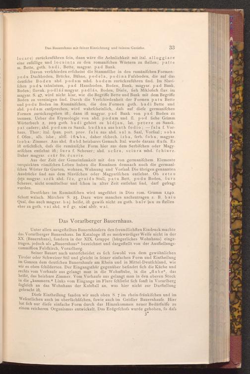 Aus der Zeit der Gemeinfamkeit mit den von germanifchem Elemente verquickten römifchen Leben haben die Rumänen demnach noch die germanifchen Wörter für Garten, wohnen, Wohnung und Vorfaal. Die übrigen genannten Ausdrücke find aus dem Slavifchen oder Magyarifchen entlehnt. Ob zetzu dețu magyar. szék ahd. fëz, graidu Stall, patu Bett, podu Boden, šura Scheuer, nicht uomittelbar und fchon in alter Zeit entlehnt find, darf gefragt werden.