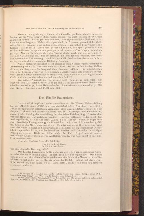 Aufser diefen urfprünglich nicht alemannifchen Vorarlbergern romanifcher Abftammung zählt das Ländchen auch noch 6000 Walfer in den beiden Walferthälern, die Bergmann für burgundifchen Stammes erklärte. Sie unterfcheiden fich in der Sprache etwas von den übrigen Vorarlbergern; ihre Mundart ift verwandt jenen deutfch- lombardifchen Mundarten, von denen die der fogenannten Cimbri und die von Gottfchee die bekannteften find.**