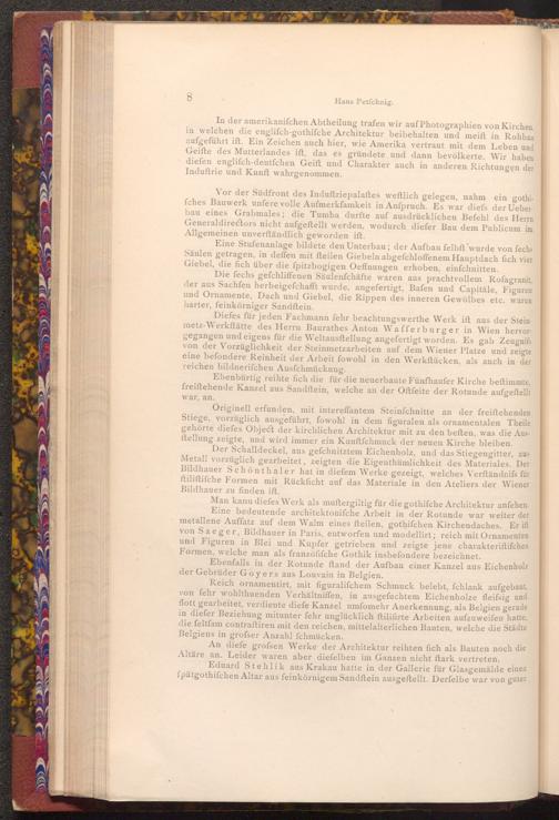 In der amerikanifchen Abtheilung trafen wir auf Photographien von Kirchen, in welchen die englifch- gothifche Architektur beibehalten und meift in Rohbau aufgeführt ift. Ein Zeichen auch hier, wie Amerika vertraut mit dem Leben und Geifte des Mutterlandes ift, das es gründete und dann bevölkerte. Wir haben diefen engliſch- deutfchen Geift und Charakter auch in anderen Richtungen der Induftrie und Kunft wahrgenommen.