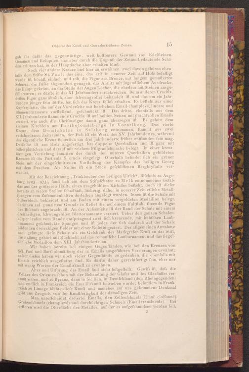 Wir haben bereits bei einigen Gegenständen, wie bei den Kreuzen von Sct. Paul und Bartholomäiberg der in Emails ausgeführten Verzierungen erwähnt; aufser diefen haben wir noch vieler Gegenftände zu gedenken, die ebenfalls mit Emails reichlich ausgeftattet find. Es dürfte daher gerechtfertigt fein, eher nur mit wenig Worten der Emailirkunft zu erwähnen.