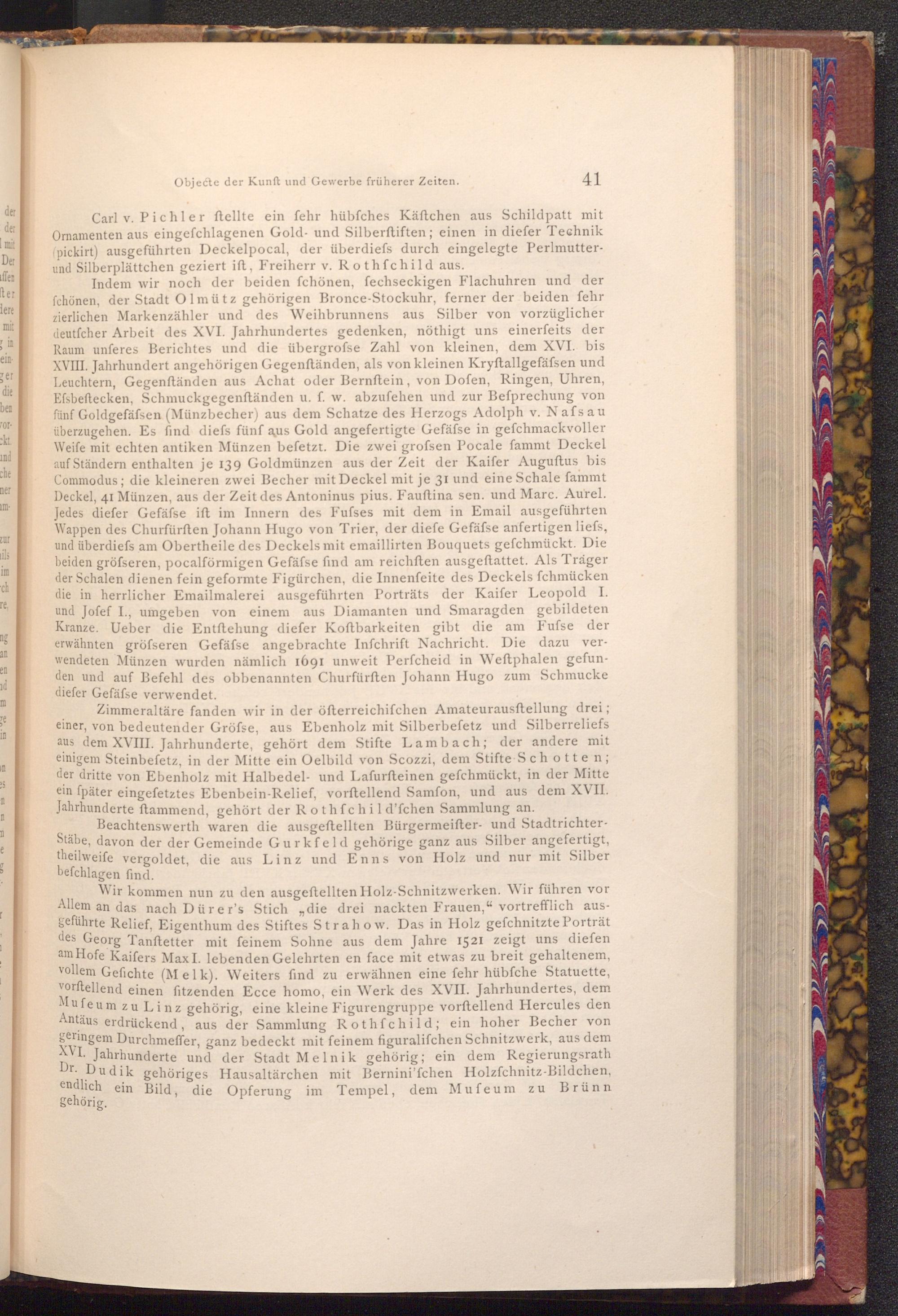 Carl v. Pichler ftellte ein fehr hübfches Käftchen aus Schildpatt mit Ornamenten aus eingefchlagenen Gold- und Silberftiften; einen in diefer Technik ( pickirt) ausgeführten Deckelpocal, der überdiefs durch eingelegte Perlmutterund Silberplättchen geziert ift, Freiherr v. Rothfchild aus.