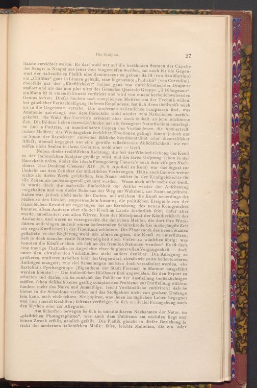 Am ficherften bewegen fie fich in unmittelbárem Nachahmen der Natur, im " plaftifchen Photographiren", was auch dem Publicum am nächften liegt und feinen Zweck erfüllt, nämlich gefällt. Die Plaftik gleicht in diefer Beziehung fo recht der modernen italienifchen Mufik: füfse, leichte Melodien, die ein- oder