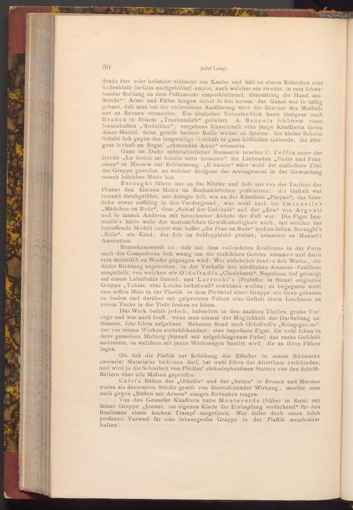 Calvi's Büften des„ ,, Othello" und der„ Selica" in Bronce und Marmor waren als decorative Stücke gewifs von überrafchender Wirkung, mochte man auch gegen ,, Büften mit Armen" einiges Bedenken tragen.
