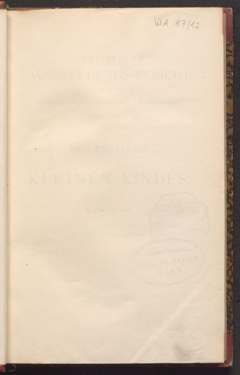 BIBL-WA87-12: Der Pavillon des kleinen Kindes : Bericht