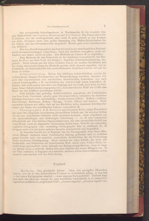 Die verbreitetfte Schreibmethode in Nordamerika ift die ebenfalls fehr gute Mufterfchrift von Payfan, Dunton und Scribners. Die Unterrichtsweife ift diefelbe, wie die vorhergehende, aber nicht fo ganz correct in den Formen wie diefe. Scribners hatte eine grofse Sammlung von Mufter- Schreibheften für die Schule und den Privatunterricht ausgeftellt. Ebenfo ganz nette Schriftproben von Schülern.