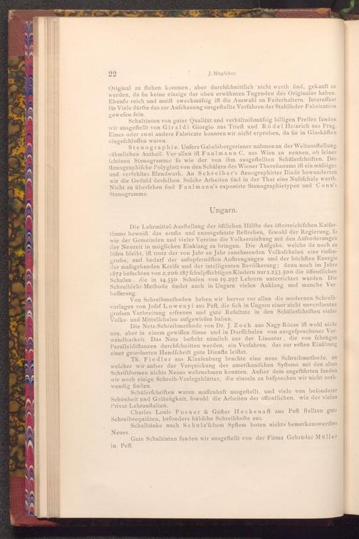 Von Schreibmethoden heben wir hervor vor allen die modernen Schreibvorlagen von Jofef Lowenyi aus Peft, die fich in Ungarn einer nicht unverdienten grofsen Verbreitung erfreuen und gute Refultate in den Schülerfchriften vieler Volks- und Mittelfchulen aufgewiefen haben.