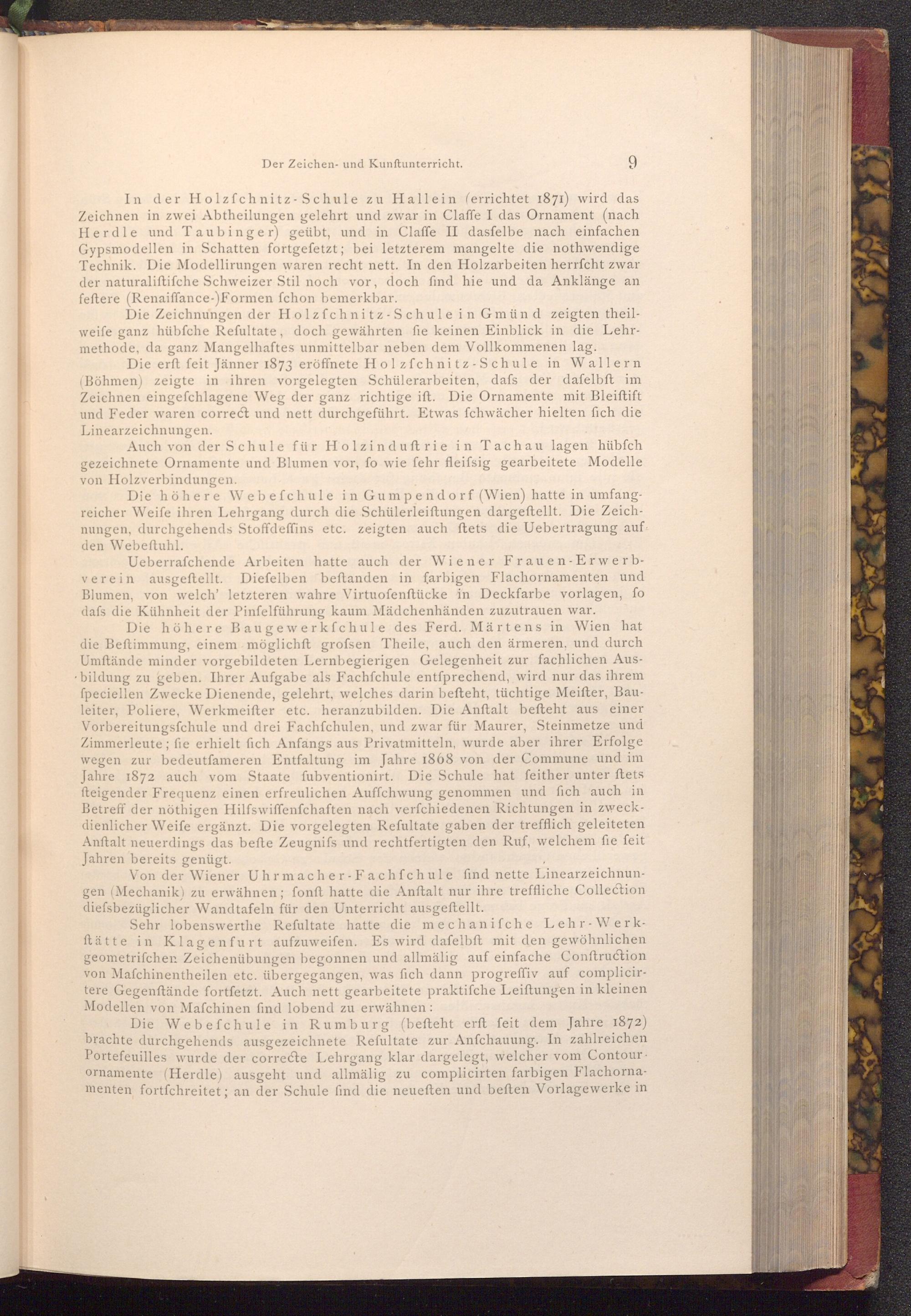 Die erft feit Jänner 1873 eröffnete Holzfchnitz- Schule in Wallern ( Böhmen) zeigte in ihren vorgelegten Schülerarbeiten, dafs der dafelbft im Zeichnen eingefchlagene Weg der ganz richtige ift. Die Ornamente mit Bleiftift und Feder waren correct und nett durchgeführt. Etwas fchwächer hielten fich die Linearzeichnungen.