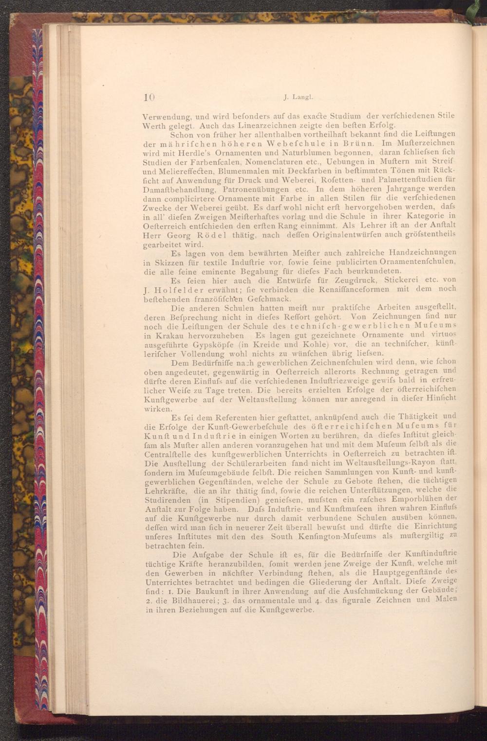 Schon von früher her allenthalben vortheilhaft bekannt find die Leiftungen der mährifchen höheren Webefchule in Brünn. Im Mufterzeichnen. wird mit Herdle's Ornamenten und Naturblumen begonnen, daran fchliefsen fich Studien der Farbenfcalen, Nomenclaturen etc., Uebungen in Muftern mit Streif und Meliereffecten, Blumenmalen mit Deckfarben in beftimmten Tönen mit Rückficht auf Anwendung für Druck und Weberei, Rofetten- und Palmettenftudien für Damaftbehandlung, Patronenübungen etc. In dem höheren Jahrgange werden dann complicirtere Ornamente mit Farbe in allen Stilen für die verfchiedenen Zwecke der Weberei geübt. Es darf wohl nicht erft hervorgehoben werden, dafs in all' diefen Zweigen Meifterhaftes vorlag und die Schule in ihrer Kategorie in Oefterreich entfchieden den erften Rang einnimmt. Als Lehrer ift an der Anftalt Herr Georg Rödel thätig, nach deffen Originalentwürfen auch gröfstentheils gearbeitet wird.