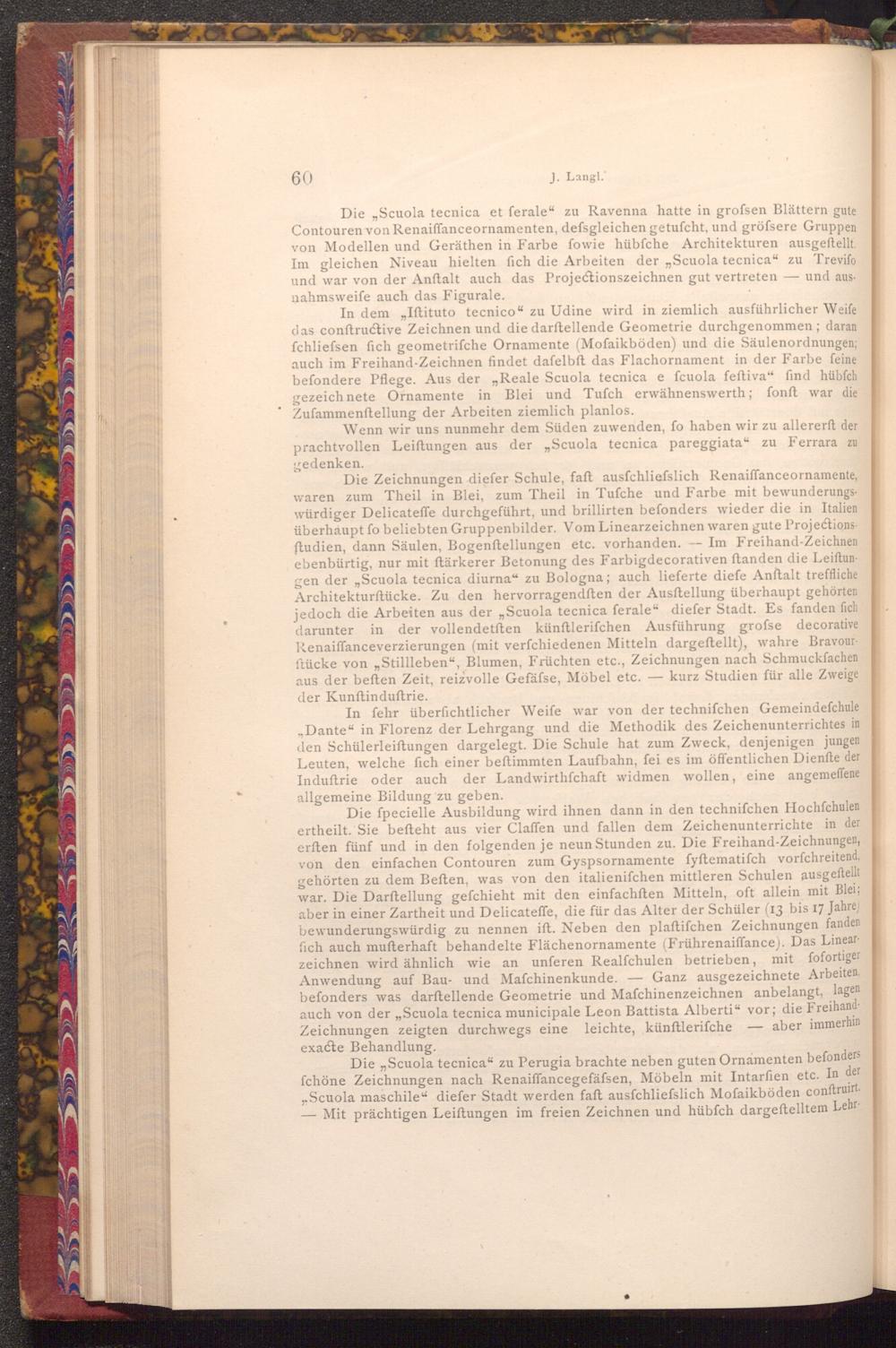 Die„ Scuola tecnica et ferale" zu Ravenna hatte in grofsen Blättern gute Contouren von Renaiffance ornamenten, defsgleichen getufcht, und gröfsere Gruppen von Modellen und Geräthen in Farbe fowie hübfche Architekturen ausgeftellt. Im gleichen Niveau hielten fich die Arbeiten der Scuola tecnica" zu Trevifo und war von der Anftalt auch das Projectionszeichnen gut vertreten und ausnahmsweife auch das Figurale.