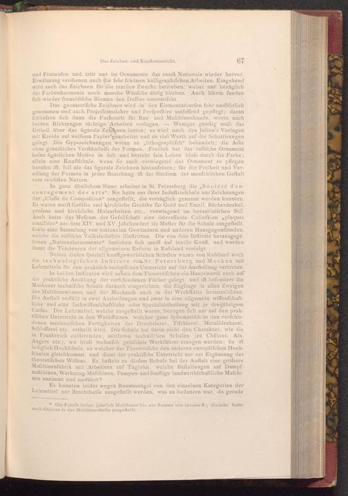 Neben diefen fpeciell kunftgewerblichen Schulen waren von Russland noch die technologifchen Inftitute von St. Petersburg und Moskau mit Lehrmitteln für den praktiſch- technifchen Unterricht auf der Ausftellung vertreten.