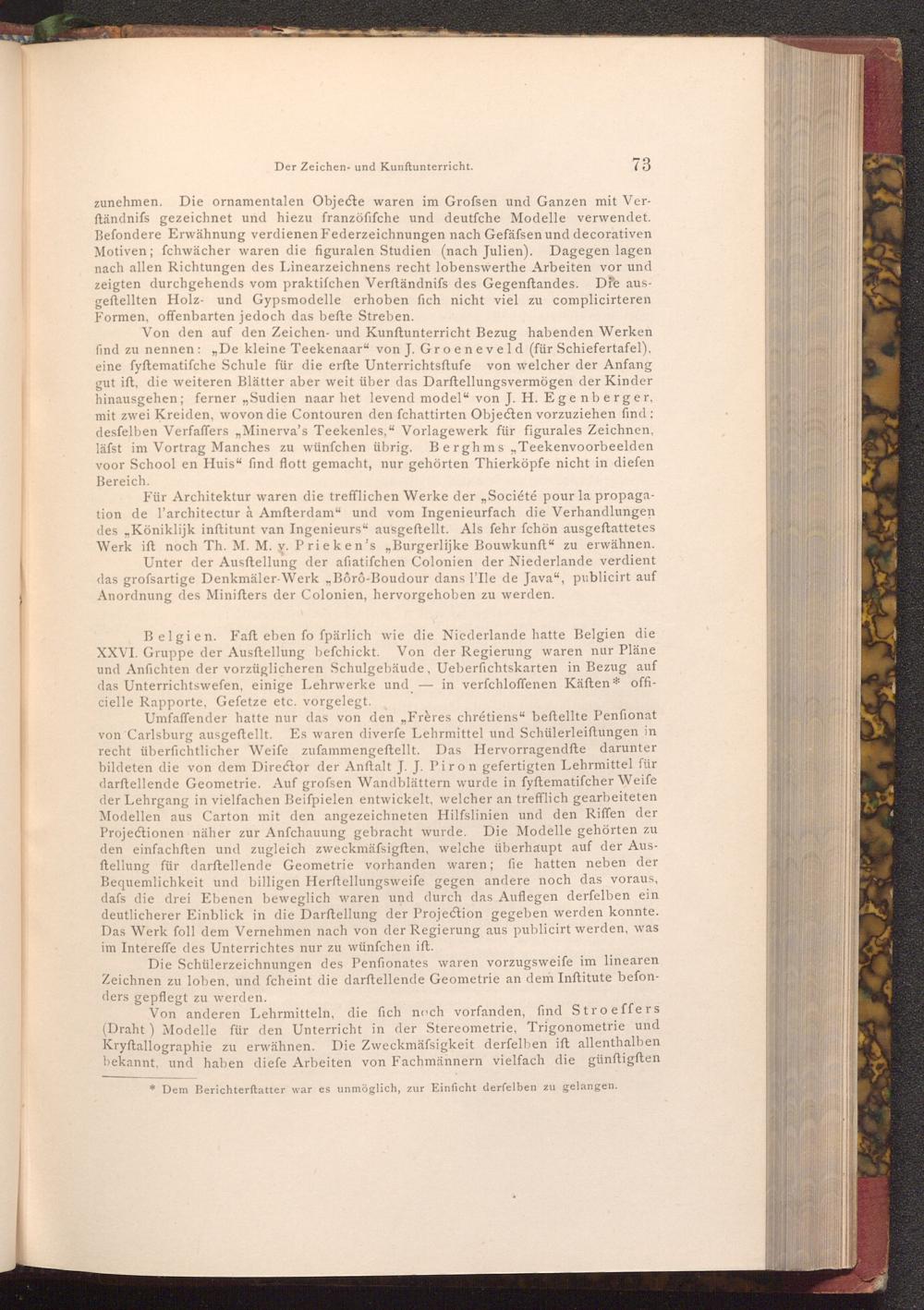 Belgien. Faft eben fo fpärlich wie die Niederlande hatte Belgien die XXVI. Gruppe der Ausftellung befchickt. Von der Regierung waren nur Pläne und Anfichten der vorzüglicheren Schulgebäude, Ueberfichtskarten in Bezug auf das Unterrichtswefen, einige Lehrwerke und in verfchloffenen Käften* officielle Rapporte, Gefetze etc. vorgelegt.